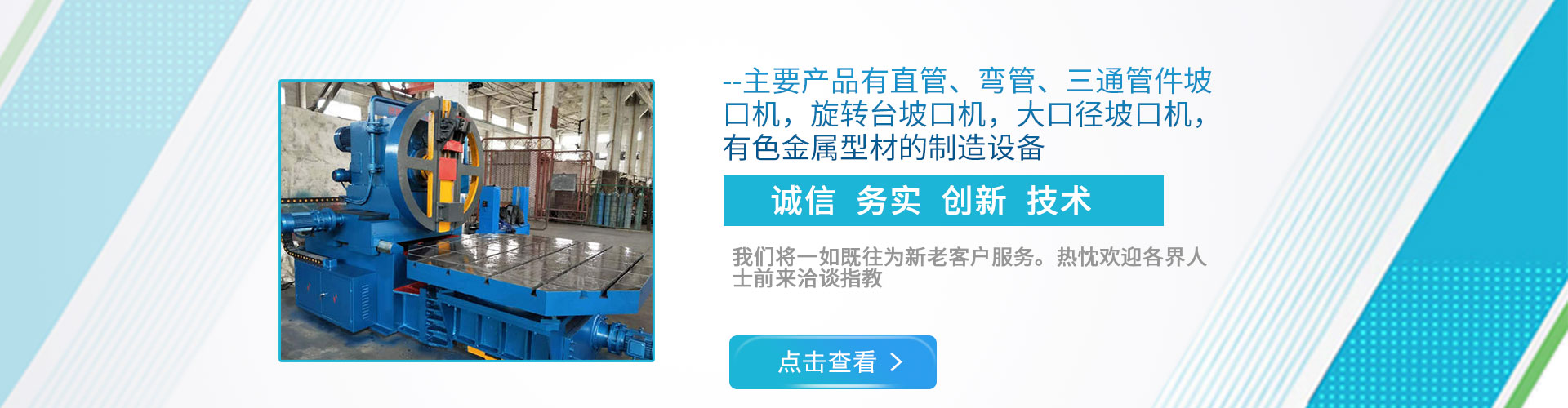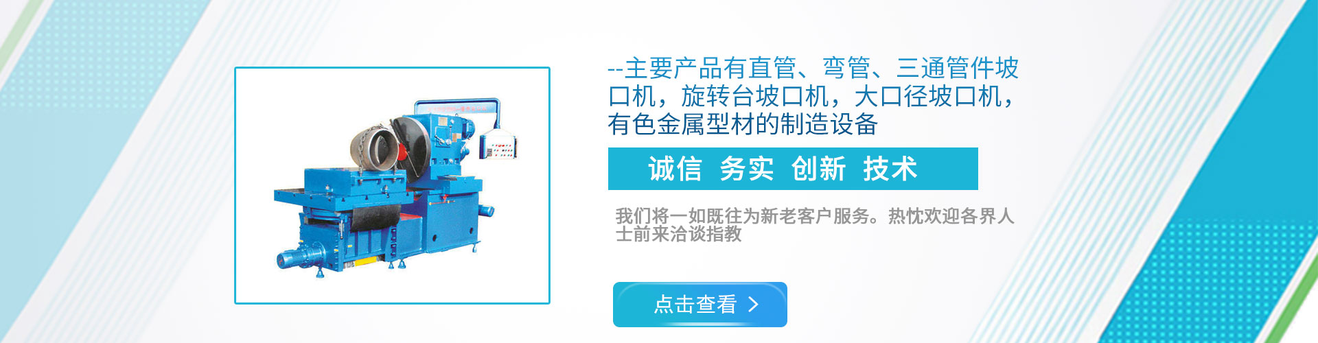 公司現下轄兩個分廠,一分廠主營電動管道坡口機和焊接設備,適用于造船、電力工程安裝、石油、化工、鍋爐廠、冶金以及鋼鐵行業(yè); 二分廠主營雙頭坡口機,600mm直管坡口機和金屬型材擠壓生產線,適用于銅、鋁、鎂、鉛、鋅等有色金屬及其合金的加工。